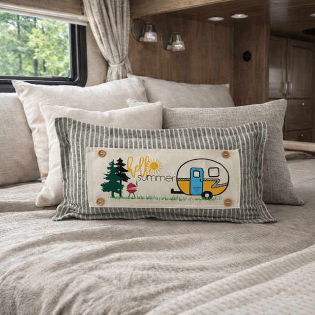 PANEL ONLY: RECTANGLE Hello BBQ Summer Vintage Camping Yellow Sunshine Camper, SUMMER CAMPER