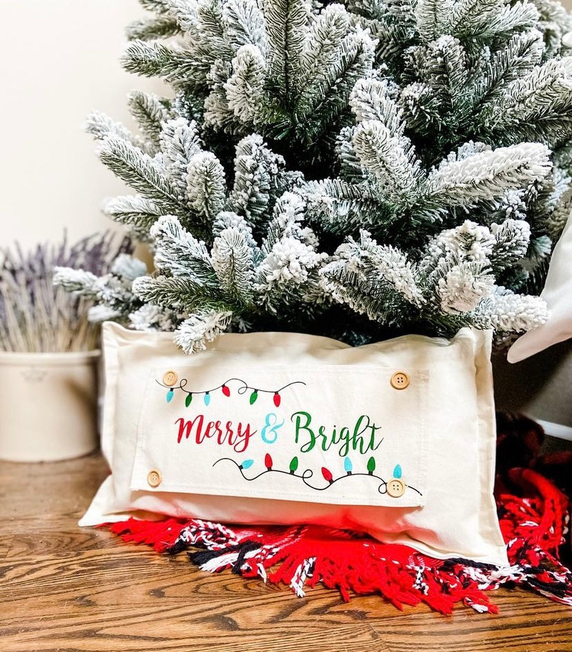 PANEL ONLY RECTANGLE: Holiday Panel: Winter, Christmas Lights, String of Lights, Farmhouse, Red, Green, Blue ; MERRY & BRIGHT