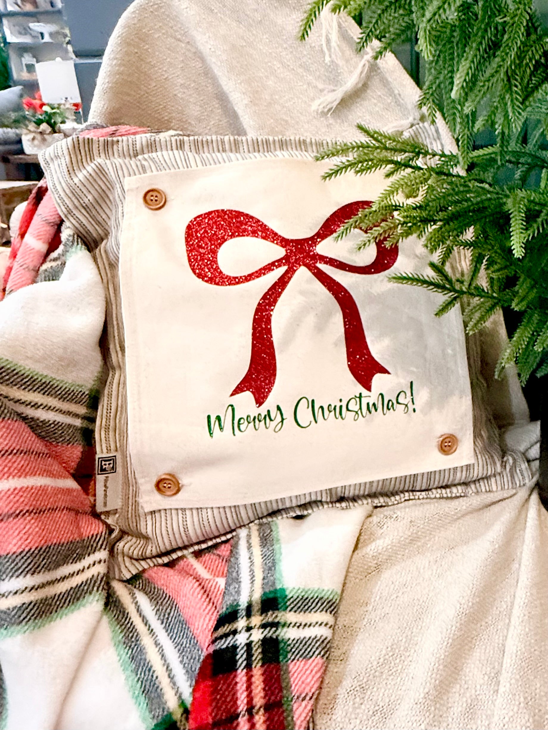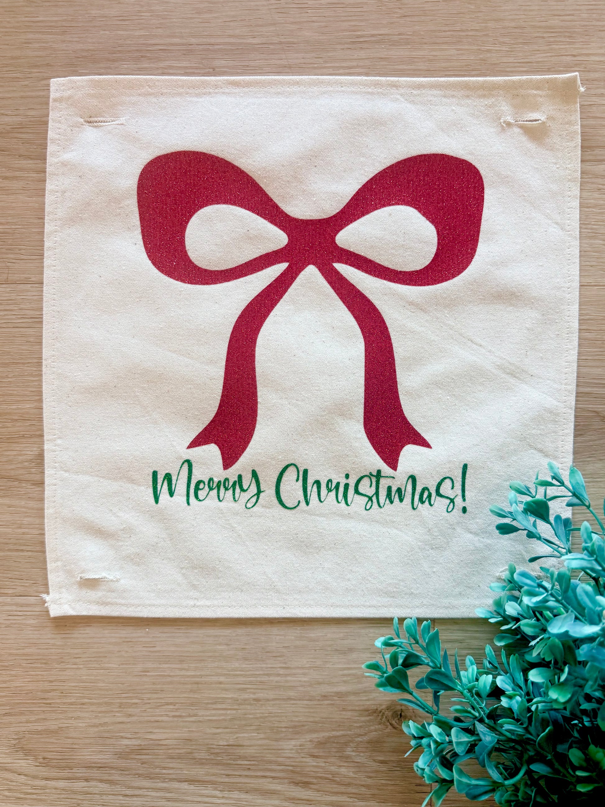 GLITTER PANEL ONLY: SQUARE Winter Bling Sparkle Twinkle Bling Glitz Confetti Green Merry Christmas Bow RED RIBBON
