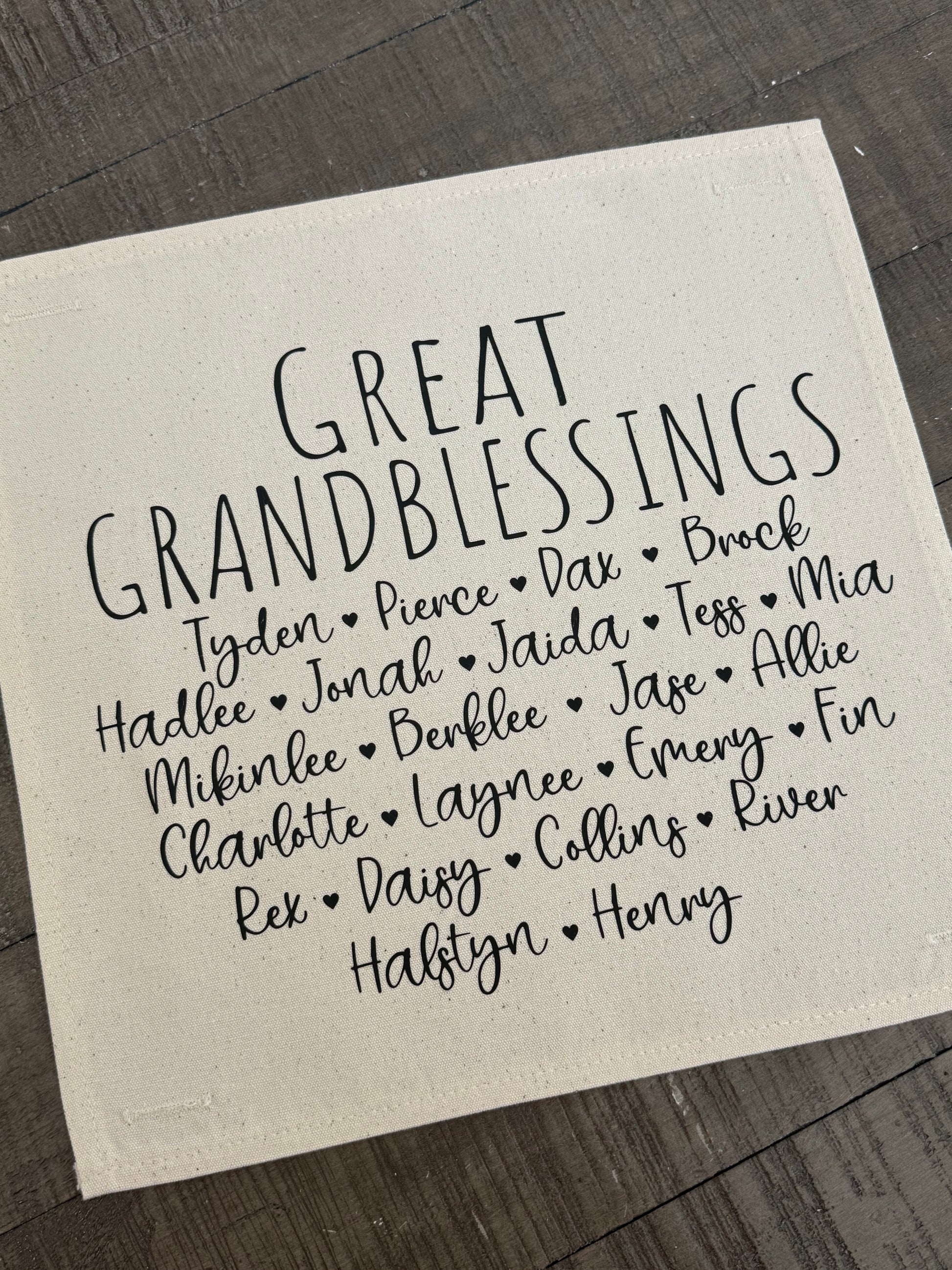 SQUARE PANEL ONLY: Custom Memory Panel: GrandBlessings Family Name Monogram Grandkids SQUARE CUSTOM PANEL